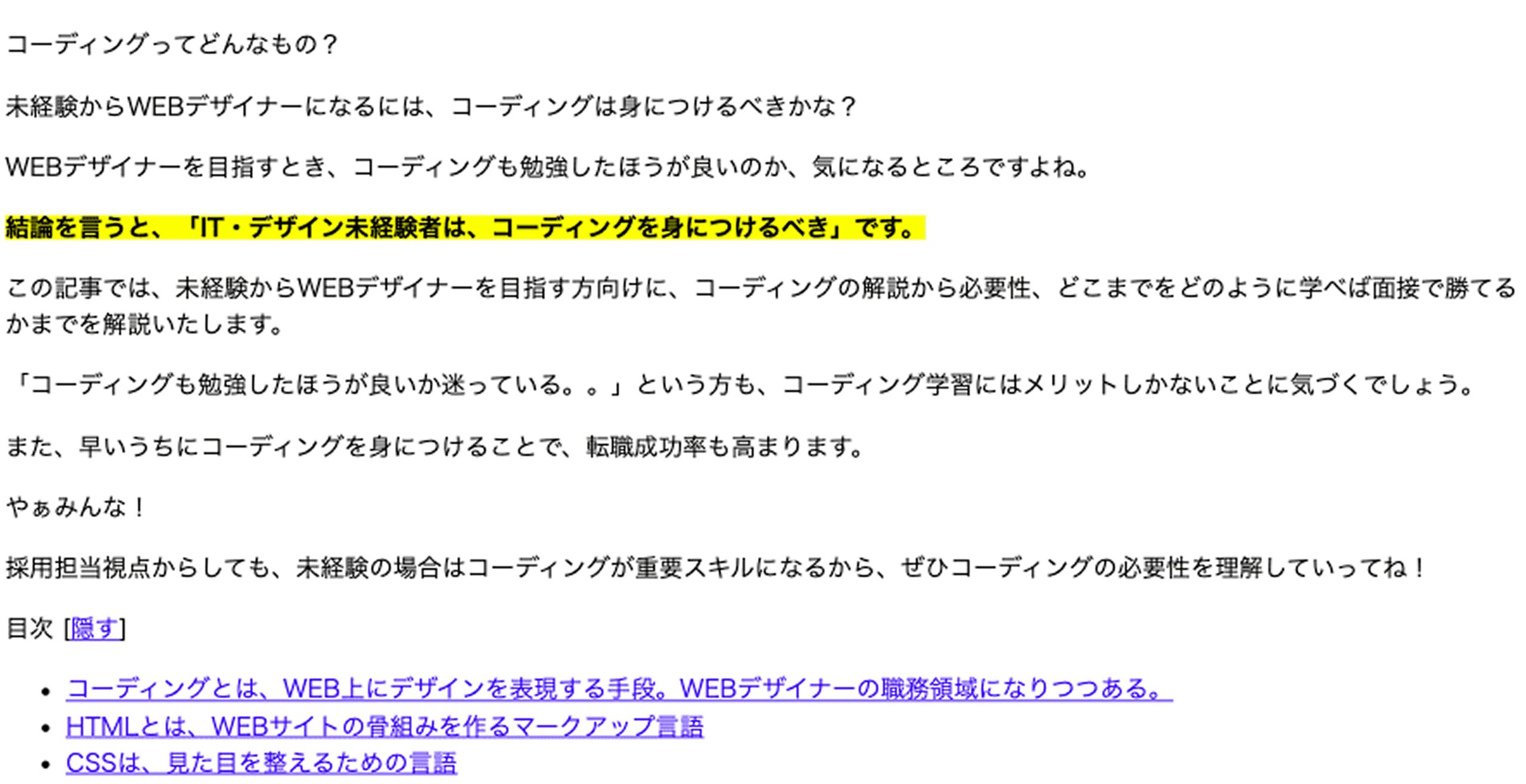 業界の仕組み的にも、未経験者はコーディングを身につけるべきと言えそうだね。