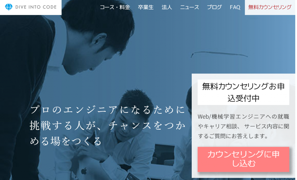 | HP | DIVE INTO CODE(ダイブイントゥコード)のWebサイト |